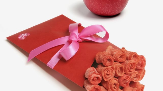 Et la pomme Pink Lady se transforme, comme par magie, en rose exquise... Une bonne et belle idée pour la St Valentin !