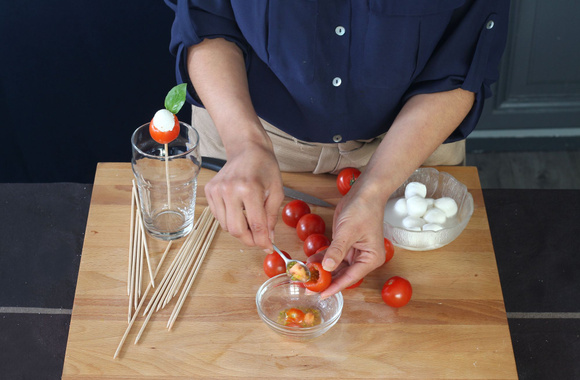 2Videz l'intérieur de chaque tomate cerise afin d'avoir une paroi nette.