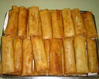 ensuite on coupe les feuilles de brick en deux ,on y met au bord une cuillère du mélange en longueur en renferme les deux bords de la feuille puis en roule.