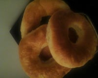 Former des anneaux avec la pâtes, les plonger 1 minute dans une grande casserole d'eau bouillante. Faire cuire 20 minutes dans un four chauffé à 180°C.