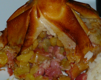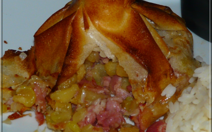 Placer cette farce au mileu de la feuille de brick, refermer en aumônière. Cuire 20 minutes à four chaud 180°C.