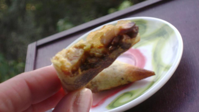 J'ai utilisé des feuilles de brick rectangulaires spécial samoussa que j'ai coupées en 3 sur la longueur.