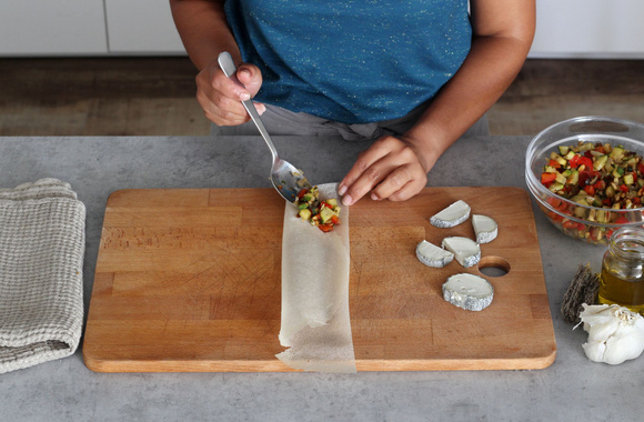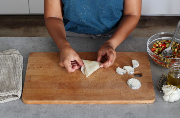 7Déposez une demi rondelle de Sainte-Maure de Touraine AOP.