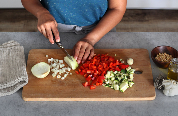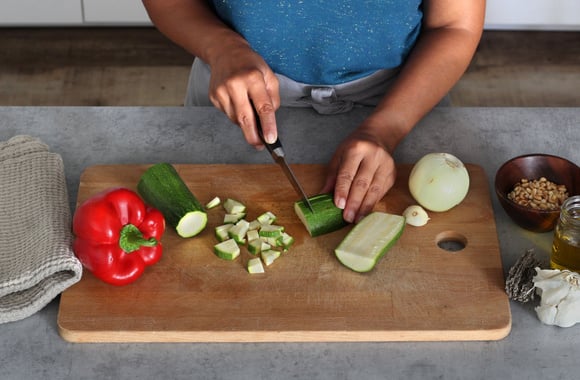 3Dans une poêle, faites revenir les légumes avec l'huile d'olive, le persil et le thym jusqu'à ce qu'ils deviennent tendres.
