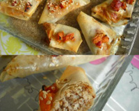Sur chaque bande de brick, déposez un petit tas du mélange d'amande et quelques cubes d'abricot.