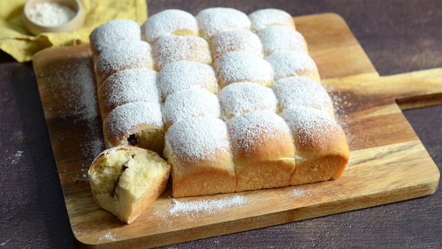 Le façonnage de la brioche buchty se fait en forme de petites boules qu'on placent l'une à côté de l'autre et chaque boule contient une petite surprise à l'intérieur. Si ce n'est pas des carrés de chocolat, c'est de la confiture au choix ou de la pâte au chocolat.