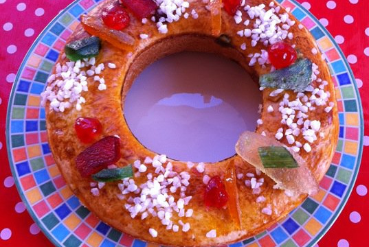 LA vraie brioche des rois, avec sucre grelot et fruits confits.