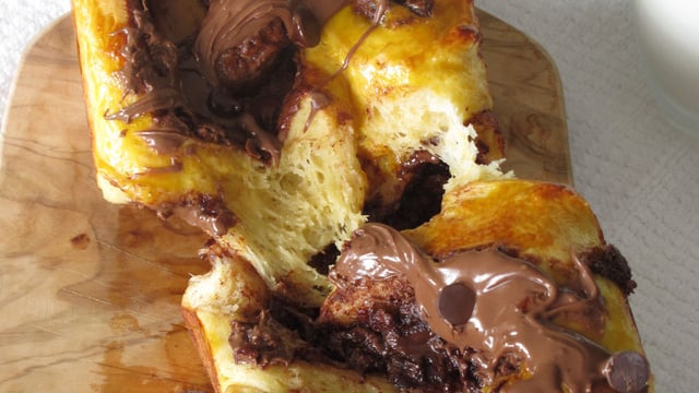 Étaler la pâte à tartiner dessus et rouler la pâte sur elle-même.