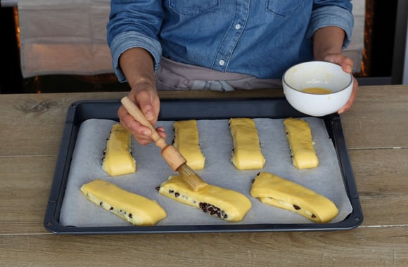 Badigeonnez les brioches avec un jaune d’œuf battu, enfournez pour 15 minutes.