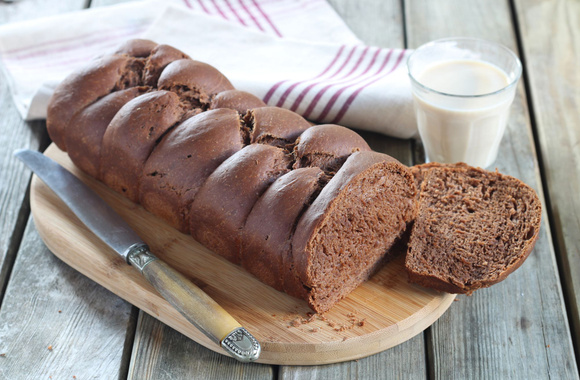 13Mettez la tresse dans un moule à cake, badigeonnez-la de lait et enfournez dans le four préchauffé à 180°C pendant 25 min environ.
