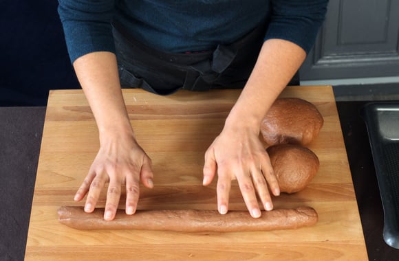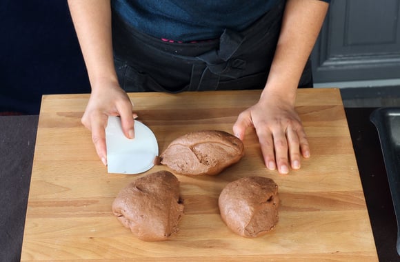 10Retirez l'air du pâton puis coupez-le en 3 morceaux.