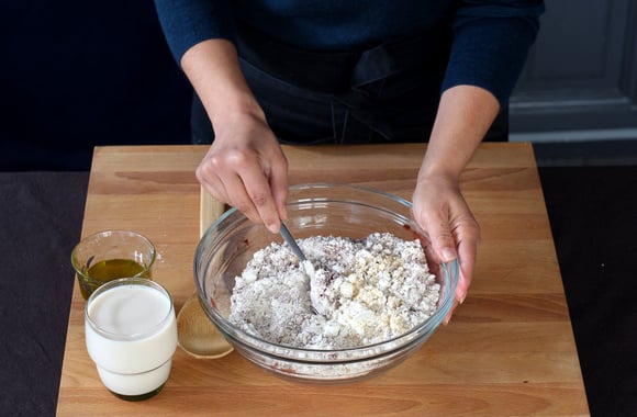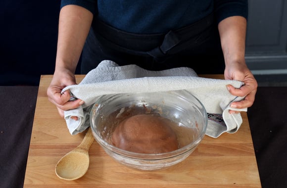 8Pétrissez pendant 10 minutes, couvrez le pâton d'un torchon et laissez reposer pendant 1h30 dans un endroit tiède.