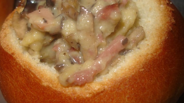 Dans un tupperware, versez le mélange champignons-lardons, ajoutez la mie des brioches, cassez les 3 oeufs et ajoutez la crème fraîche. Bien mélanger le tout. Rectifiez l'assaisonnement.