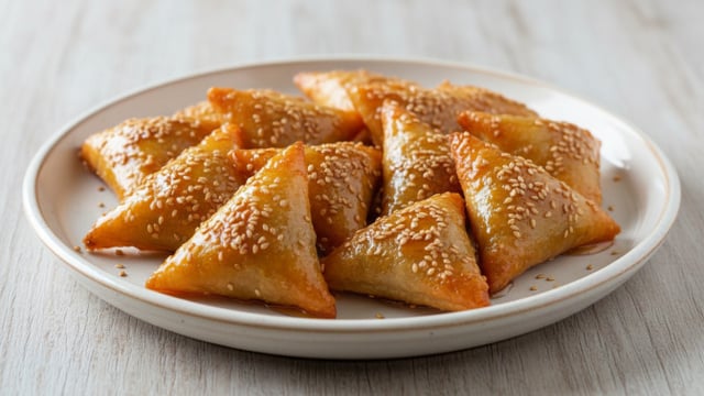 Triangles feuilletés farcis aux amandes et cacahuètes.