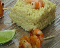 Suggestion de sauce pour accompagner les brochettes : une petite sauce originale à base de savora, de miel, de zestes d'orange, de jus de citron, d'ananas et d'orange.