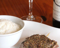 Tartinez enfin les deux côtés de moutarde à l'ancienne. Saupoudrez avec le thym séché. Enfin salez et poivrez.