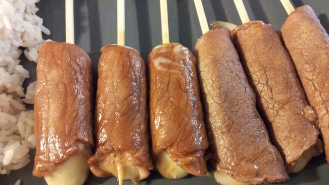 Typique des assortiments de yakitori des restaurants japonais, cette brochette n'est pourtant pas originaire du Japon. C'est très certainement une invention française...