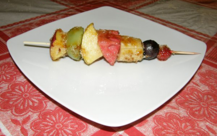 Couper les fruits en cubes, mettre dans les brochettes en alternant.