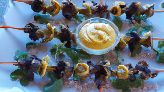 Fendre légèrement les pommes de terre,puis les enfilez-les sur des brochettes de bois et piquer 2 ou 3 moules dans les entailles et saupoudrez de pignons de pin.