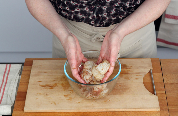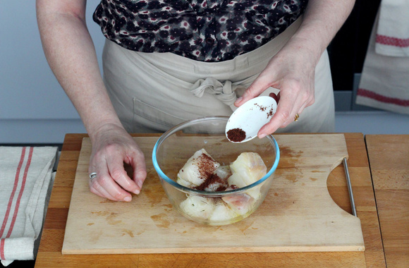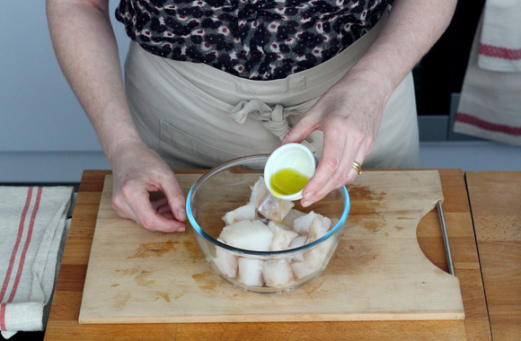 5Coupez les pavés de cabillaud en gros cubes.