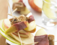 - 2Préparez vos brochettes en enveloppant chaque morceau de pomme d'une tranche de magret et enfilez sur une pique en bois avec une demi-figue sèche.Servez sans trop attendre pour que la pomme ne noircisse pas.