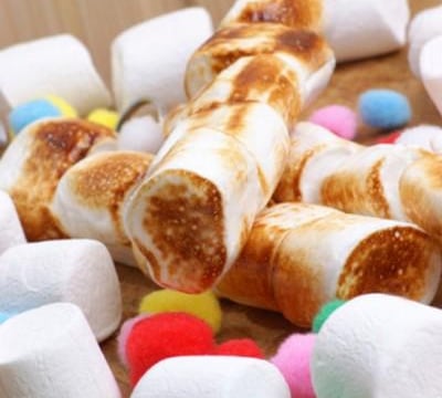 Vous pouvez aussi réaliser des brochettes de chamallows et les flamber soit sur un barbecue, avec un chalumeau (attention les enfants, c'est un adulte qui s'en occupe).