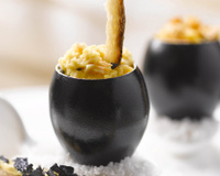 Maille réinvente ainsi l'oeuf de Pâques dans une recette gourmande alliant l'édition limitée de la moutarde au Chablis aux brisures de truffe noire et le savoir-faire de ce chef d'exception.