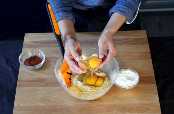 2Ajoutez les œufs et mélangez.