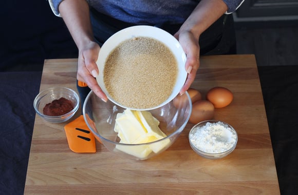 1Versez le beurre mou dans un bol, ajoutez la cassonade et mélangez bien.