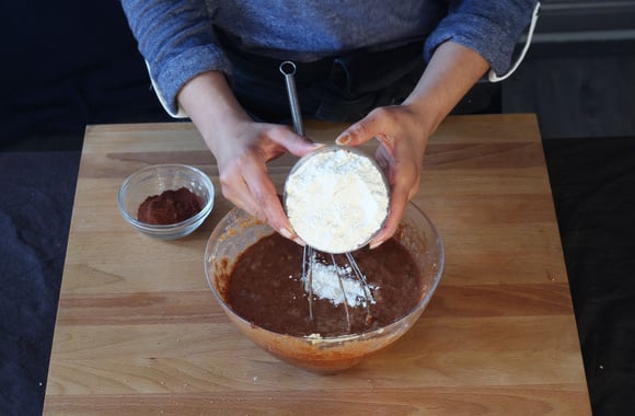 5Ajoutez le cacao tamisé.