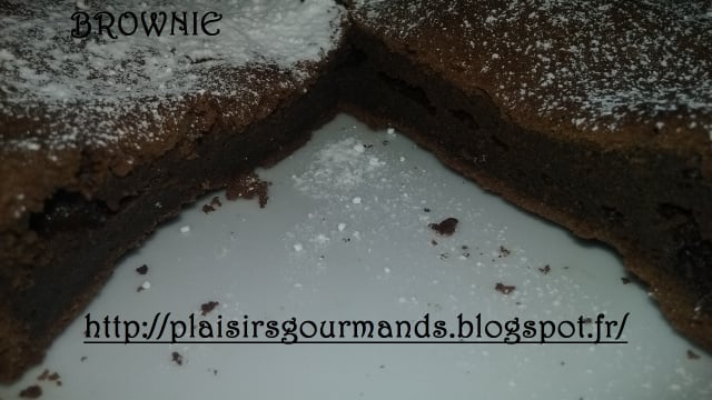 A la sortie du four, laissez refroidir complétement, puis démoulez le brownie sur un plat, découpez-le et plus qu'à déguster
