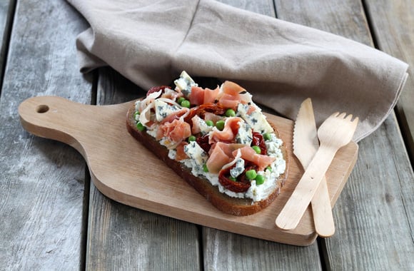 Une bruschetta à la fourme d'Ambert, rustique et pleine de saveurs. C'est l'idéal pour un repas goûteux.