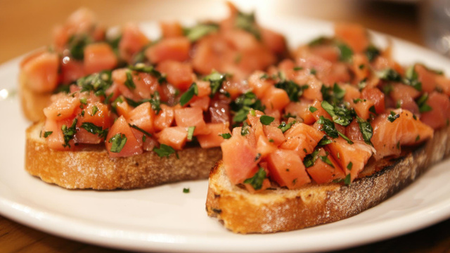 Ces bruschettas au saumon fumé peuvent être servies pour un plat rapide à manger sur le pouce, un plat équilibré avec une salade ou en apéritif dinatoire si on les découpe en bouchées. C'est une recette extrêmement facile et rapide à faire.