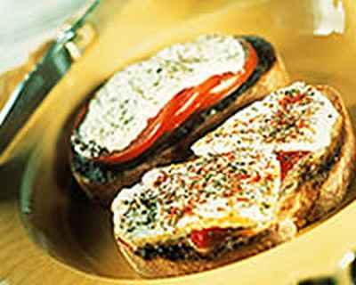 On peut rajouter du coulis de tomates sur les tranches de pain.