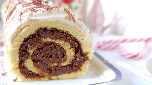 Réservez le roulé au réfrigérateur 2 heures avant de couper les extrémités. Préparez le top en fouettant à la main le mascarpone et le sucre glace.
