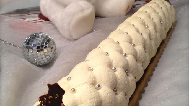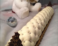 Réserver la bûche au réfrigérateur jusqu'au moment de la dégustation (ou au congélateur, puis la placer 12 heures avant la dégustation au réfrigérateur et 30min à t° ambiante avant de la servir).