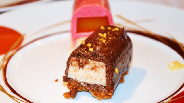 5 heures après la deuxième étape, sortir les préparations des deux premières étapes. Dans des moules mini-bûche en silicone, verser de la mousse au chocolat, puis l'insert et recouvrir à nouveau de mousse. Laisser de la place pour le biscuit. Mettre le tout au congélateur pour une nuit.