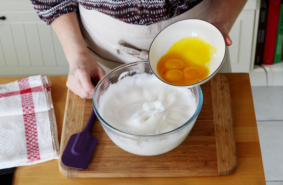 Ajoutez les jaunes et fouettez très légèrement.