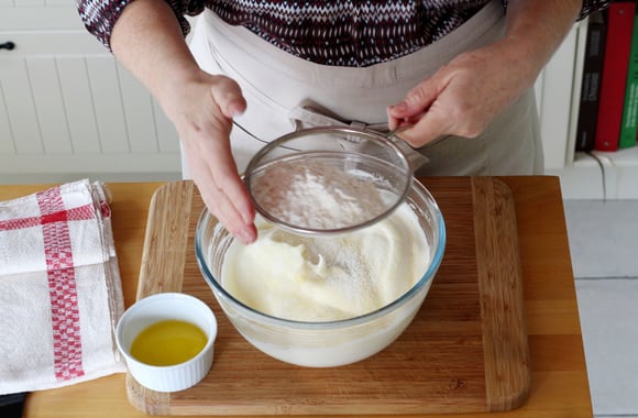 9Tamisez le mélange farine et Maïzena au dessus du bol et incorporez-les délicatement à la maryse.