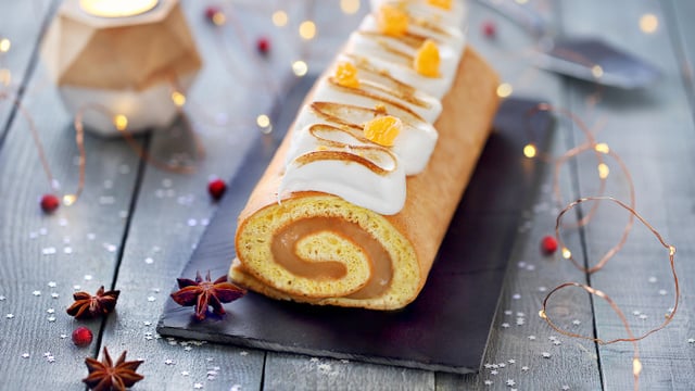 Répartissez les quartiers de clémentines tout le long de la bûche.