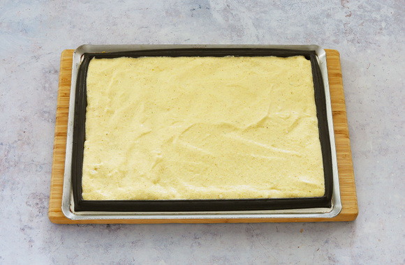 Enfournez pour 8 minutes puis, sans retirer le tapis ou le papier sulfurisé, couvrez le biscuit avec un torchon propre humide pour le garder moelleux. Laissez refroidir.