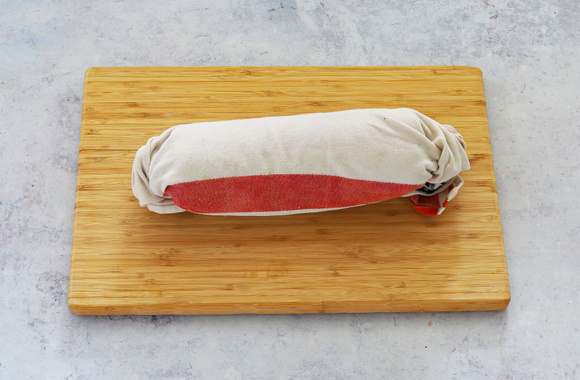 8Faites glisser délicatement la bûche ainsi obtenue sur le torchon humide. Enveloppez-la délicatement, déposez-la sur une planche ou une assiette rectangulaire et faites-la reposer dans le réfrigérateur au minimum 6 heures (toute une nuit dans l'idéal).