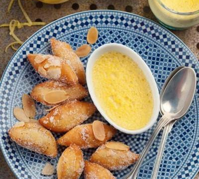 Préchauffer le four th.8 (240 °C). Dans une casserole, faire chauffer la Crème Fleurette Entière Elle et Vire avec le zeste de citron et le gingembre. Laisser infuser 10 minutes. Mettre dans un bol les jaunes d'oeufs, le sucre et la vanille. Fouetter énergiquement pendant 3 minutes au dessus d'une casserole d'eau chaude, sans que le fond du bol touche l'eau. Filtrer la crème, verser sur la préparation oeufs- sucre-vanille et mélanger. Répartir dans des ramequins et placer au four pendant 20 minutes. Eteindre le four et laisser les crèmes prendre jusqu'à ce que le four soit froid, sans ouvrir la porte. Déposer les ramequins de crème citron dans des assiettes puis disposer les bugnes à côté.