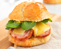 Sortir du four les burgers, déposer quelques feuilles de cresson, refermer avec le chapeau et servir bien chaud.