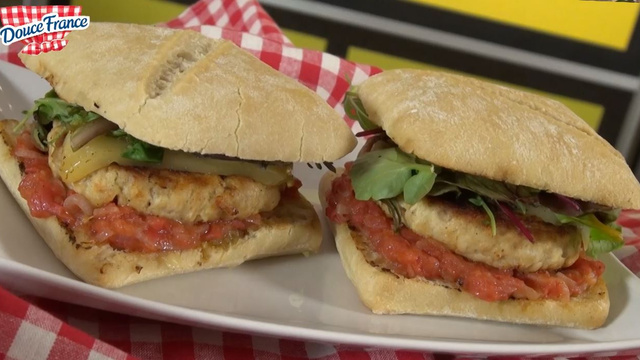 Faites cuire les hachés de poulet Douce France dans un poêle avec un filet d'huile d'olive, pendant 1 min 30 sur chaque face. Salez, poivrez.