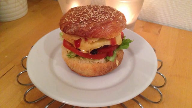 Pour les pains à burger Mélanger tous les ingrédients ensemble dans un grand bol et faites-en une belle pâte. Rajoutez-y le beurre ramollis et laisser reposer la pâte pendant au moins 1h. Préchauffez le four à 200 degrés.