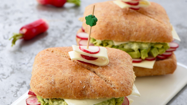 Notre conseil : vous pouvez décorer les burgers avec des pics en bois et des lanières de Société® Croque intercalées avec des tranches de radis.
