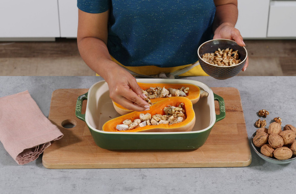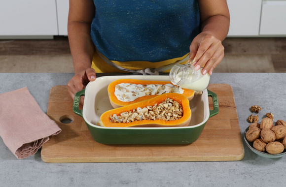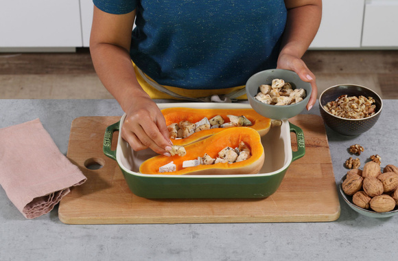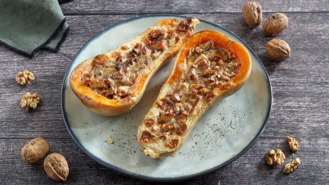 Un plat complet original et réconfortant à base de courge Butternut, poulet et Noix de Grenoble AOP.