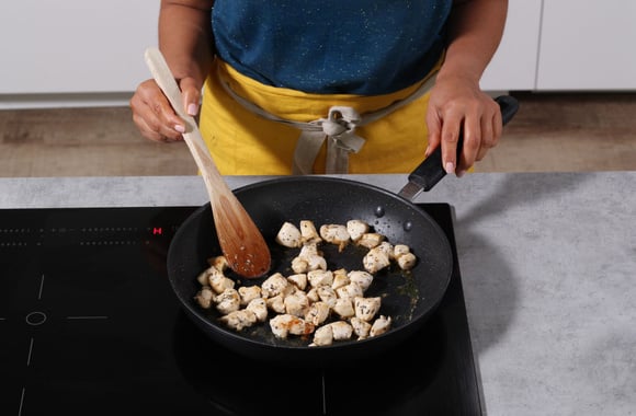 7Ajoutez les dés de poulet.