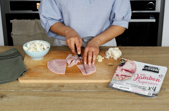 4Coupez le jambon en lanières.